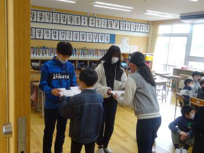 今日の一時間目は、5年生が主体となって行うなかよし活動でした。6年生に感謝の想いを伝えるために、これまで計画してきたことを出し切りました。どのなかよし班でも、それぞれに考えたゲームを楽しそうに活動していました。