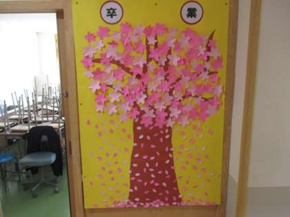 4年生の卒業生へのお祝いや感謝の思いが込もった掲示になりました。