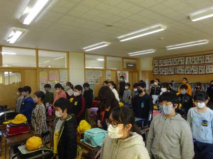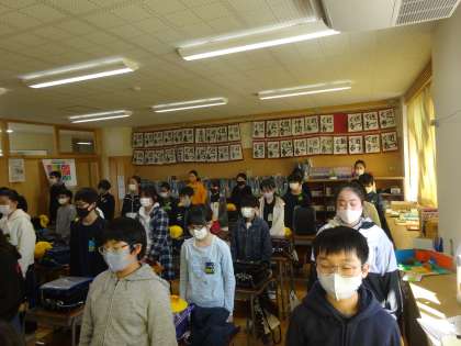 今日は、東日本大震災十周年の日です。教頭先生からの全校放送で、14時46分に黙祷を行いました。