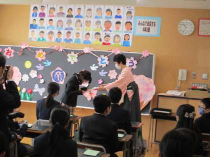 卒業式を行いました。子供たちは小学校生活を通して、様々な人と関わり、たくさんのことを経験しました。その中で、一人一人が成長することができました。