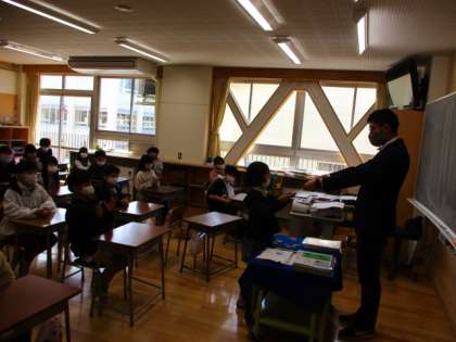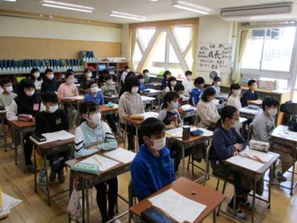 どの教室でも、校長先生の話を姿勢よく、しっかりと聴いていました。