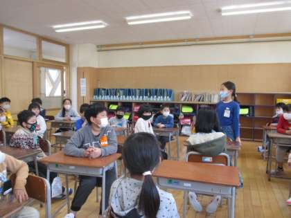 いよいよ3年生がスタートしました。クラス替えがあり、新しい仲間との出会いがあったので、自己紹介をしました。好きな食べ物やスポーツ、アニメ等をうれしそうに話す子供たちに、聞いている子供たちは「わたしもイチゴ大好き」「ペットがいるのいいなあ」と盛り上がりました。