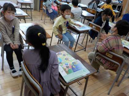 道徳の学習では、あいさつについて考えました。どんなあいさつがあるかやあいさつをするとどんな気持ちになるかなど、自分が考えたことを話したり、友達の考えたことを聴いたりしました。「気持ちいい挨拶をしたい」「これからもたくさんの人と挨拶をしたい」等これからの自分の行動についてしっかりと考えることができました。
