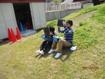 理科の学習で天気の変化と雲を関係付けて観察しています。クロムブックを活用して雲の量や動きがどのように変わるか意欲的に調べていました。