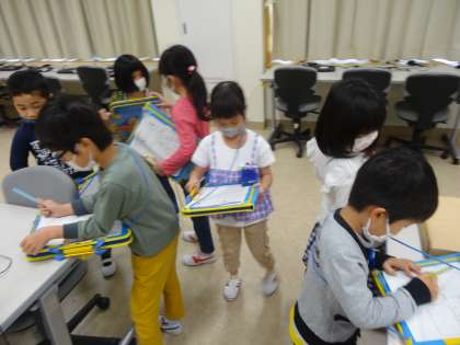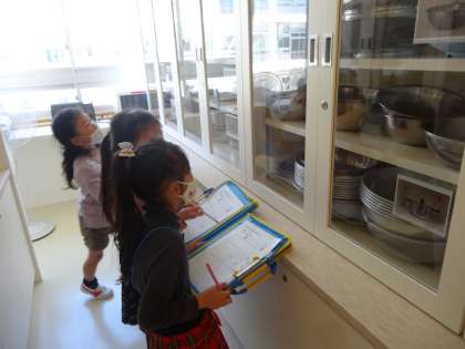 1年生は、生活科の学習で学校を探検しています。今日は2階の教室を探検し、見付けた物をワークシートに書きました。自分たちの教室にはない物を見付け、驚いていました。