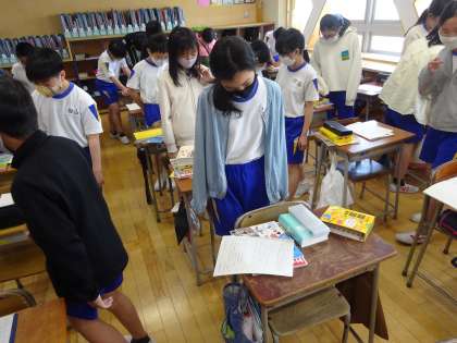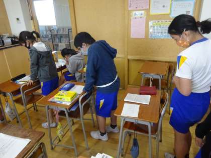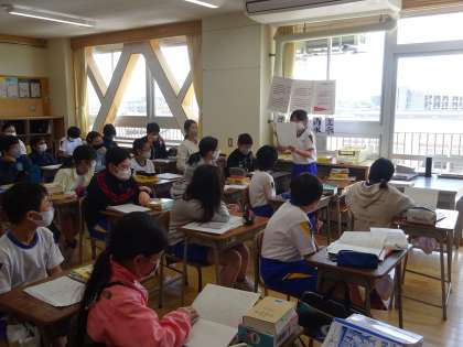 6年生の社会は、政治編から始まります。今日は、日本国憲法についての学習を行いました。日本国憲法の前文を読んで、国語辞典等を用いながら、自分なりに解釈していきます。後半は、友達の書いた前文の解釈を読んで、「○○さんの、分かりやすい!」とつぶやく子供たちでした。最後に、数人に読んでもらい、それぞれの読み取りや解釈のよさを感じていました。