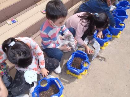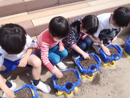 自分のあさがおを植えました。「大きくなあれ」「元気に育ってね」と声をかけながら優しく植えている姿が素敵でした。