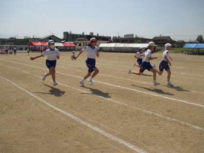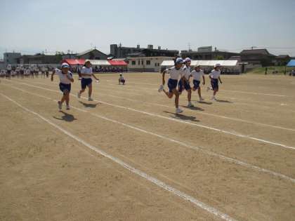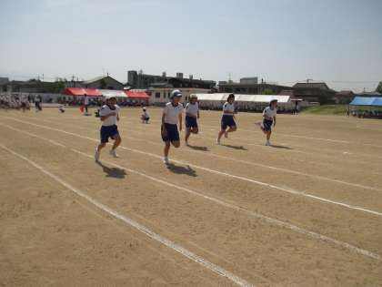 50m走です。「最初は前傾姿勢「腕を振る」等、体育の学習で学んだことを生かして、最後まであきらめずに走り抜けました。