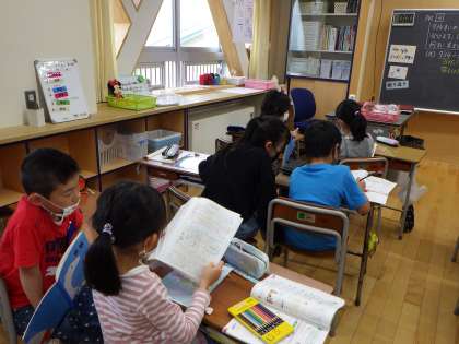 算数では、わり算の筆算の学習に取り組んでいます。図をノートに描きながら、どうやって大きな数を割ったらよいか考えました。友達と聴き合いながら学びを深めています。