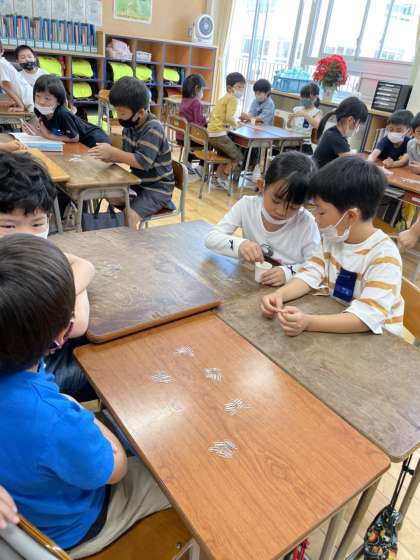 「100よりも大きい数」の学習が始まりました。大量のクリップを数える活動では、「10のまとまりで数えるといい」「10のまとまりを10こ集めて、100をつくろう」といった考え方が出ました。グループの友達と協力し、クリップがいくつあるのか懸命に数えていました。