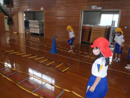 今日は。初めてラダーを使ってステップの練習をしました。複雑な動きに苦戦する様子も見られましたが、楽しみながら練習に取り組んでいました。