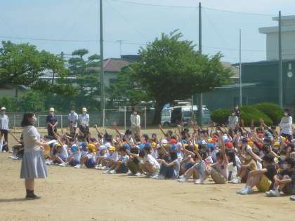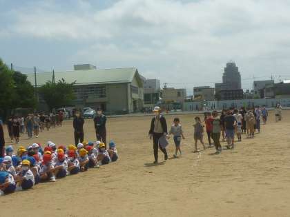 職員による講評で、「毎月1回訓練があり、これまでにもたくさん練習してきています。それは、あってはならない火事の本番でも避難に失敗しないようにするためです」と話がありました。いざというときにしっかりと避難する態度が育ってきている奥田っ子です。