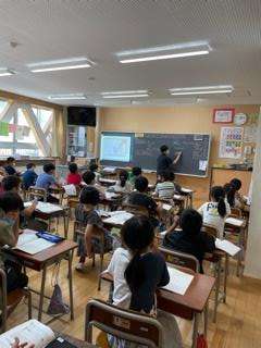 算数の学習で水のかさを表す単位を学習している子供たち。今日は「mL」について学習しました。「給食の牛乳は何mLなのか知ってる?」と投げかけると、「200mLかな」「300mLじゃない?」「家にある牛乳パックは何mLだろう」等、水のかさについて興味をもつ姿が見られました。