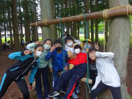 各班がつくった遊び場を巡って、いろいろな遊びを楽しみました。シーソーを作ったり、ブランコを作ったりして、とても楽しそうに遊ぶ子供たちの無邪気な笑顔が印象的でした。ゆったりと自然のよさを感じていた子供たちです。