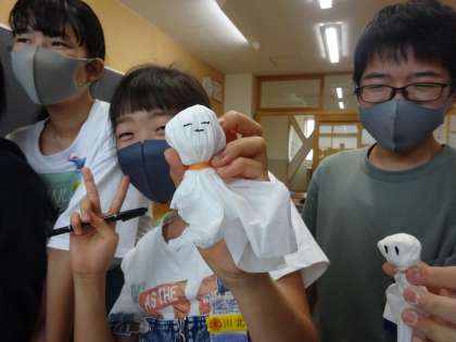 今日は、5、6時間目に水泳学習を行いました。朝は悪天候のため、入れるかどうか分からず、子供たちはふれあいタイムにてるてるぼうずを作って、晴れることを願っていました。すると、天気が徐々に晴れ、入ることができました。