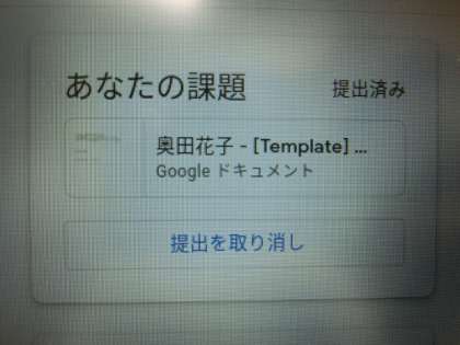 また、さらによいものを提出したくなった場合は、「提出を取り消す」こともできます。一度提出を取り消して、よりよいものを再提出してくださいね。ワークシート等は、提出している状態では、直すことができなくなりますので、注意してくださいね。