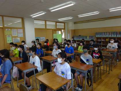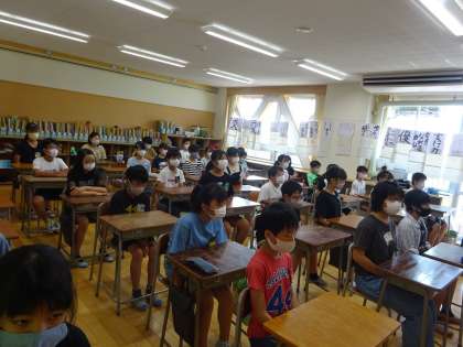 今日は、一学期の終業式でした。全校放送で行う式でしたが、姿勢を正して礼をしたり、校長先生の話をしっかり聴いたりしました。節目を大切にしようとする姿が見られました。