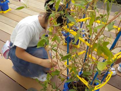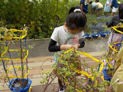 「6つしか植えていなかったのに、こんなにたくさん種が出てきているよ」「種がこんなにできて、あさがおってすごいんだな」等と気付いたことを話しながら、子供たちは生活科で育てているあさがおから種が取れる喜びを感じていました。