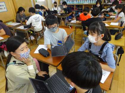 体育科のテニピンでは、試合中にゲームの分析を行っています。配球図と呼ばれる分析シートを使ったり、Chromebookで動画を確認したりして自分たちの動きを見直しています。様々なツールを使って学びを深めている子供たちです。