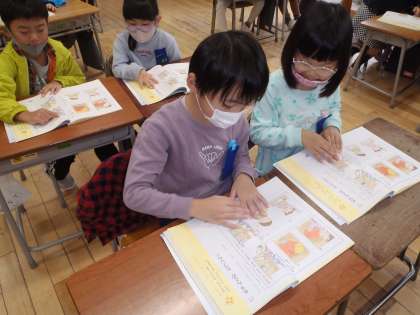 道徳では、「ちゃんとのたつじん」という題材を用いて学習しました。「ちゃんとするとかっこいいね」「わたしもちゃんとできていると思っていたけど……」と自分事として考えて、自分の机の中や、下足、ぞうきんなどを自分からきれいに片付けていました。「おうちでもちゃんと片付けをしたいな」「ちゃんと寝る時間を守りたい」「おうちでもちゃんとがんばりたい」と「ちゃんとのたつじん」を目指そうとしている姿がとってもすてきでした。