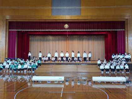 1年生は、学習発表会で入学してから成長した自分たちの姿を発表します。今日は、校長先生、教頭先生、教務の先生に見ていただきました。子供たちは1回目の本番だと緊張している様子もありましたが、やる気いっぱいで発表することができました。
