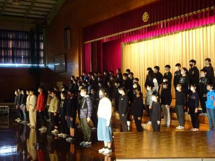 校内発表会がありました。4年生と5年生に、6年生のかっこいい姿を見せようと取り組みました。演じる歴史上の人物の思いや、これまでの自分たちの努力を伝えることを学年の目当てに据えつつ、一人一人が目当てをしっかりもって演じました。終わった後に学年で話合いをしたところ、まだ満足していない子供たちです。最後は、演じる「一瞬」を大切にし、「一人一人」の最大限を出し、学年がより大きな「一つ」の集団になれる学習発表会にしたいと思います。