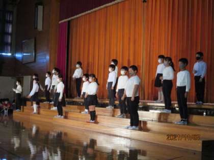 最初は、少し緊張気味に入場した子供たちでしたが、今までやってきたことや一緒に頑張ってきた仲間の存在が自信となり、自分のせりふを言ったり、踊ったりするのを楽しんでいるようでした。仲間と心を一つにして協力する心地よさを感じられた学習発表会となりました。