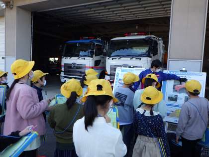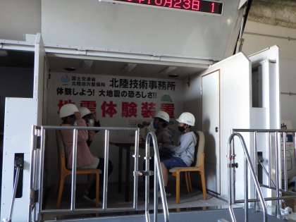 富山防災センターでは、災害が起きたときの備えについて教えていただきました。照明車や排水ポンプが付いている車等を見学しました。また、地震体験も行い、地震の怖さを少しですが感じることができました。防災についての意識が高まった子供たちです。