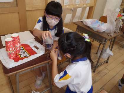 生活科では、秋を生かしたおもちゃをつくっています。「どんぐりの数を変えたら、音が変わったよ」「ここに何か飾りを付けたいな」とおもちゃづくりを楽しんでいました。ご家庭で材料等、たくさんの物を用意していただき、ありがとうございました。