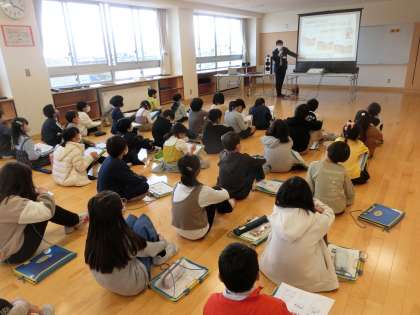講座後、教室で感想を交流した子供たちからは、「富山市でも大きい被害のある水害が起きるかもしれないと分かって、油断できないと思った」「家で非常食を準備しておこうと思う」等の声が聞かれました。