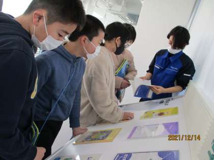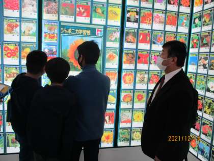 様々なノートが展示されているノートのトンネルでは、表紙の写真に興味をもって、楽しんで見学をしていました。