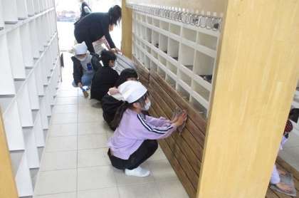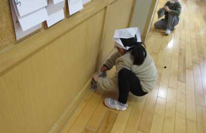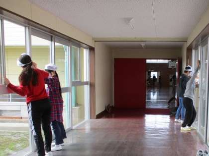全校児童、で教室や玄関、階段、廊下等いつも使っている場所を丁寧に掃除しました。