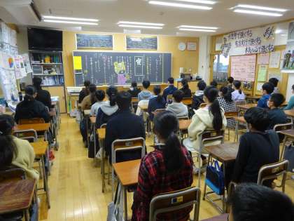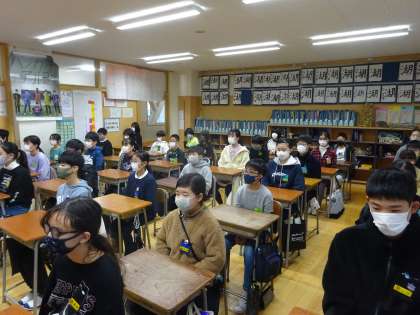 今回の始業式は、6年生にとって18回目の始業式であり、これが小学校生活最後の始業式でした。静かに校長先生のお話を聴いている子供たちです。小学校生活最終学期のスタートを落ち着いてスタートさせた6年生です。