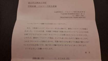 ベルマーク教育助成財団から我が校宛にベルマーク寄贈の連絡がありました。ご報告いたします。