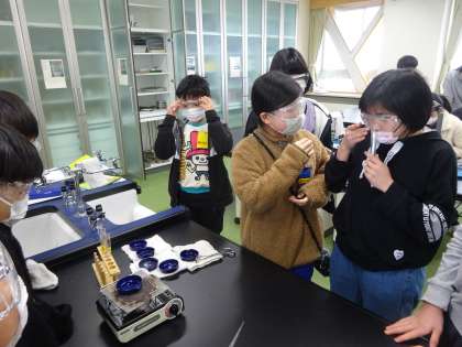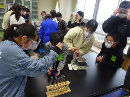 理科では、5種類の透明な水溶液を見分ける実験をしました。においをかいだり、熱して個体が残るかどうかを確かめたりしました。実験の方法をよく考えて学習していこうとする子供たちでした。