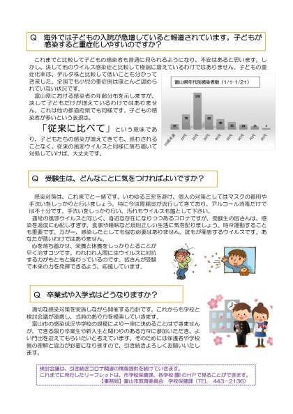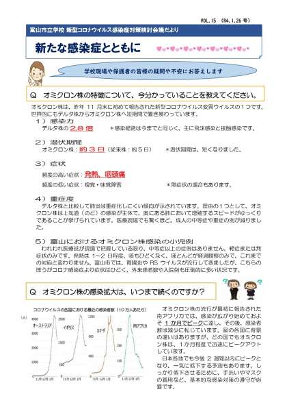 富山市立学校新型コロナウイルス感染症対策検討会議だよりvol.15