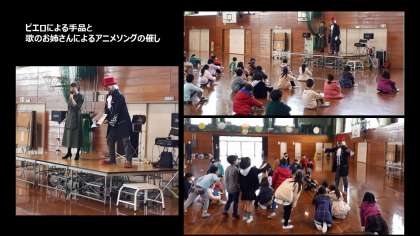 今年は、ピエロによる手品と歌のお姉さんによるアニメソングの催し、PTAによるブラックライト空間、新聞紙雪合戦。