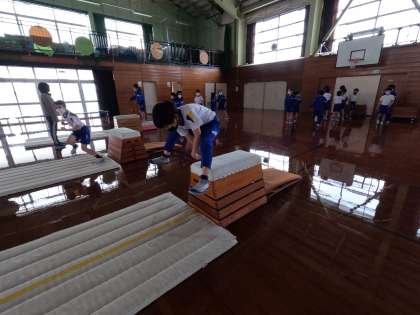 3年生の体育科で「跳び箱」の学習が始まりました。子供たちは、助走から、踏み切り、着手、着地等、様々な動きを意識しながら開脚跳びの練習に取り組んでいます。3年生で跳び箱の基本をしっかりと習得することで、高学年で行う様々な技につなげていきたいと思っています。
