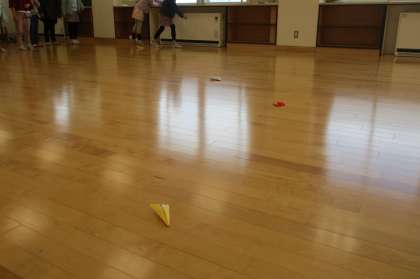 今回は誕生日集会係が「紙ひこうき大会」を開きました。一人一機作った紙ひこうきを一番遠くまで飛ばせた人が優勝です。いくつも作って試した子やクロームブックを使って遠くまで飛ばせる紙ひこうきの作り方を調べてきた子もいました。
