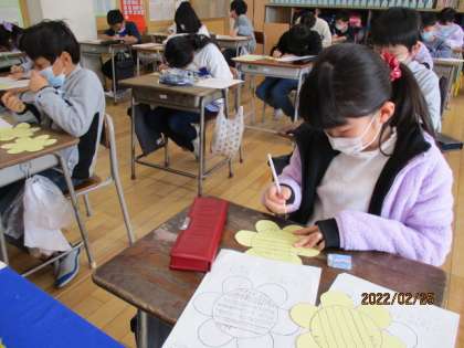 いよいよ5年生を中心に「卒業お祝いプロジェクト」が始まり、今までお世話になったなかよし班の6年生さんへ手紙を書きました。