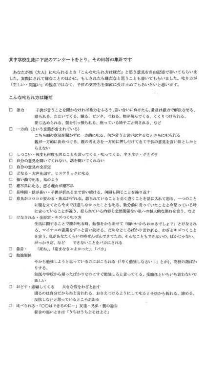 子どもたちの意見や考えに耳を傾けること(傾聴)や理解することは、親のかかわり方を考えるうえで重要なことと考え、引用いたしました。ご参考になれば幸いです。