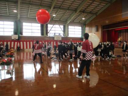 門出の式では、とうちゃん会の方が、おみくじの入った大きな風船を準備してくださいました。大きな風船を触ろうと盛り上がる姿には、最後の小学生らしさも感じたように思います。とうちゃん会の皆様、本当にありがとうございました。