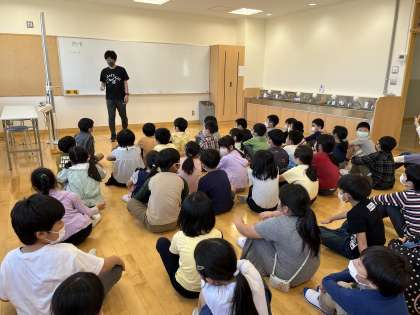 今日は、総合的な学習の時間に、学年で大豆についての話をしました。これから大豆を育てたり、食べたりするのを楽しみにしている子供たちです。