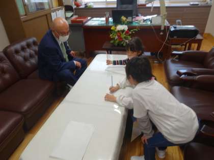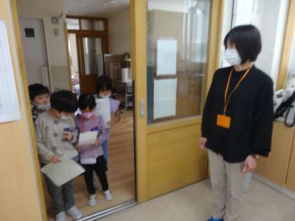 生活科の学習で、奥田小学校の探検をしています。職員室や用務員室等に行き、先生の名前や仕事をインタビューしたり、どんな物があるか調べたりしました。校長室に行った子供たちは「教室の椅子よりふわふわの椅子があったよ」「校長先生とたくさんお話ができて楽しかったよ」と活動を振り返っていました。