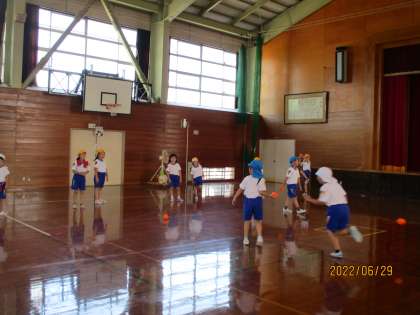 富山市体育協会スポーツ指導員の方をお招きし、ボール運動の学習を行いました。7月1日(金)には、ソフトボール投げに取り組む予定です。タオルを使ったボールの投げ方の練習も教えていただいたので、ぜひご家庭でも取り組んでみてください。