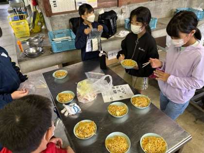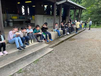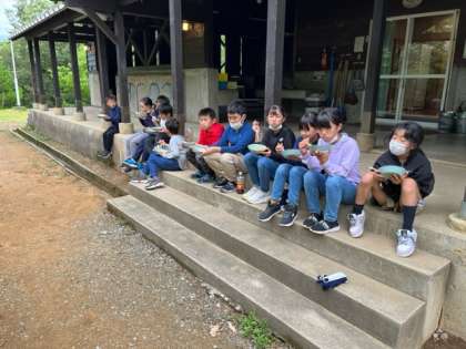 みんなで作った焼きそばをみんなが肩を並べて一緒に食べ、達成感で満たされた子供たちでした。