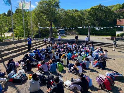 無事呉羽青少年自然の家に到着し、入所式を終えました。皆、礼儀正しく参加していました。