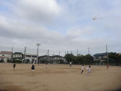 グラウンドで凧あげに挑戦しました。子供たちは風の向きや風の強さを意識しながら、友達と凧を高くあげようと熱心に活動していました。「風が強いときに走ると、凧がすごく高いところまであがったよ」「凧があがると、風が重たく感じるよ」と凧あげを通して、風の面白さや不思議さを感じていました。