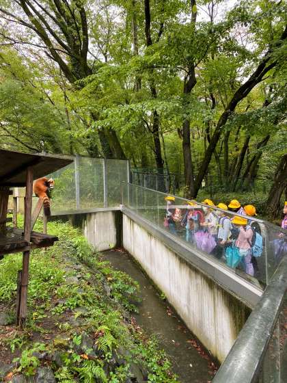 レッサーパンダを見ました。子供たちが見ているからか、植物を食べたり、走り回ったりしてくれました。子供たちは喜んで見ていました。