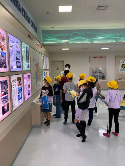 クリーンセンターの模型やごみに関する資料の説明を聞いたり、見たりしました。真剣に取り組んでいまさ。